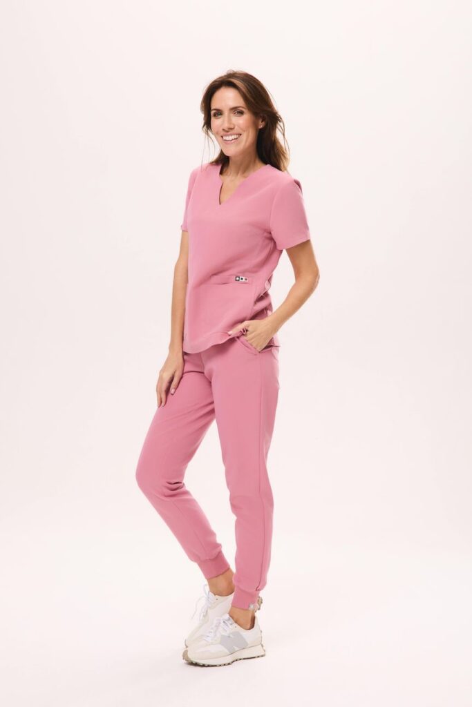 Bluza medyczna MODERN w kolorze różowym to niezwykle kobiecy fason, który idealnie podkreśla sylwetkę, jednocześnie zapewniając wyjątkowy komfort i swobodę ruchów. Elegancki dekolt w serek oraz praktyczne trzy duże kieszenie, łączą styl i funkcjonalność.