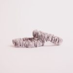 Materiał wykonany w 100% z uszlachetnionego poliestru o jedwabnym wykończeniu jest tkaniną wysokiej jakości, który łączy trwałość syntetycznego włókna z elegancją i delikatnością jedwabiu. Gładka powierzchnia materiału zmniejsza ryzyko łamania kosmków, a jedwabisty dotyk sprawia, że gumka jest delikatna dla Twoich włosów.