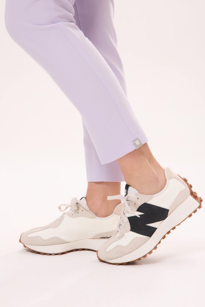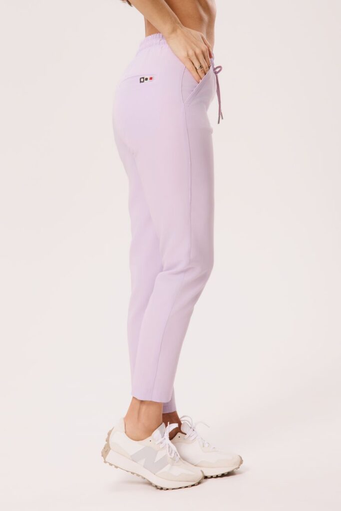 Spodnie medyczne CLOSE FIT w kolorze Lila to nowoczesna propozycja o dopasowanym kroju, która łączy funkcjonalność z modnym wyglądem. Ich zwężające się nogawki, które kończą się tuż nad kostką, tworzą wyjątkowo kobiecą sylwetkę. Miękka, wygodna guma w pasie zapewnia doskonałe dopasowanie i komfort przez cały dzień. Spodnie mają dwie ukośne kieszenie na biodrach oraz dwie kieszenie z tyłu, ozdobione firmowym logo. Dodatkowo, wnętrze pasa zdobi nasz autorski print, który nadaje spodniom wyjątkowy charakter i subtelną elegancję, wyróżniając je spośród innych modeli.