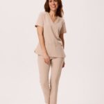 - Spodnie medyczne damskie proste CLOSE FIT scrubsy – Piaskowy Beż