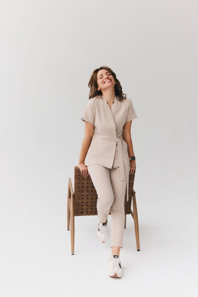 Spodnie medyczne CLOSE FIT w pięknym odcieniu beżu to elegancka propozycja z prostą nogawką i gumą w pasie. Subtelnie zwężają się ku dołowi, idealnie pasując do wersji naszych rozpinanych bluz, choć świetnie komponują się także z innymi modelami z naszej Kolekcji Kapsułowej.