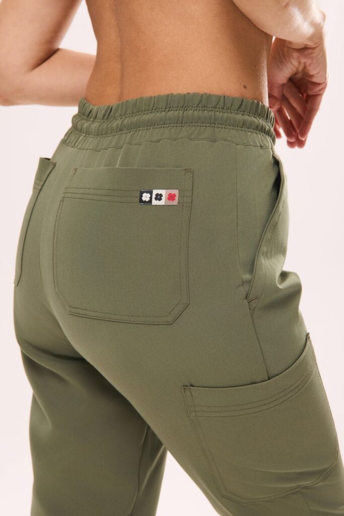 - Spodnie medyczne damskie joggery CLASSIC scrubsy – Oliwka