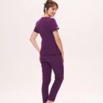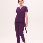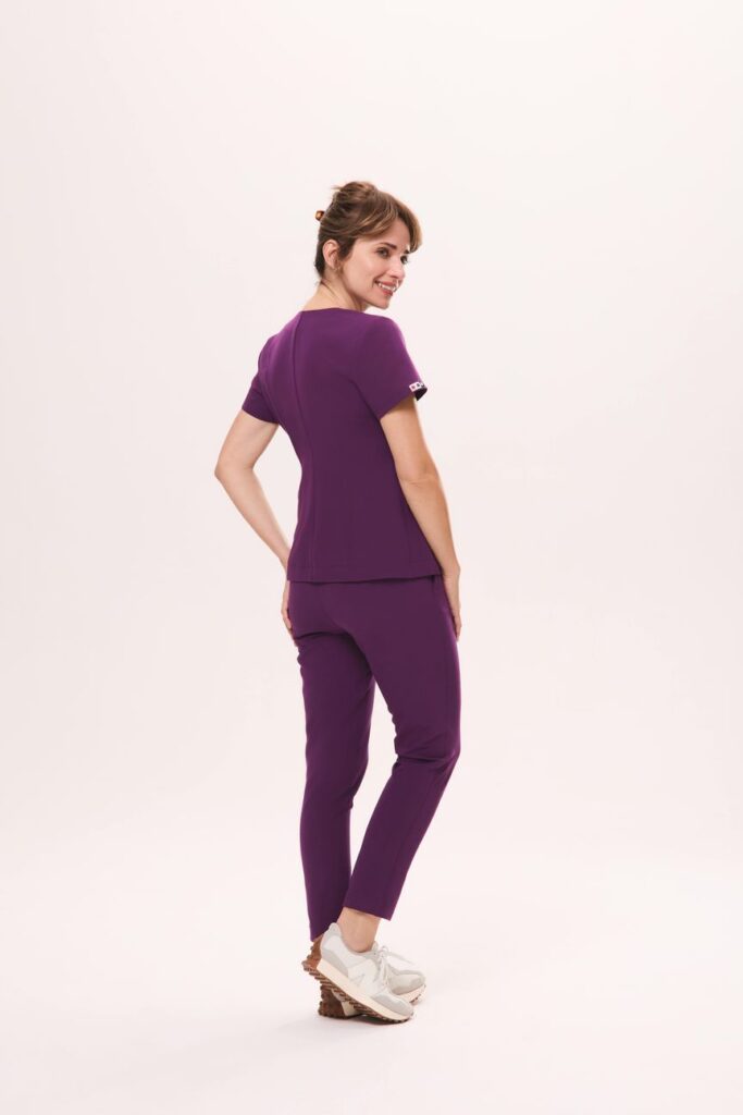 Tunika medyczna JACKET w kolorze śliwkowym to ponadczasowy model łączący elegancję i funkcjonalność. Kopertowy krój marynarki, delikatnie dopasowany i przewiązywany w pasie, podkreśla sylwetkę, zapewniając jednocześnie wygodę. Klasyczny dekolt w serek nadaje jej uniwersalnego charakteru, a ukryta, pojemna kieszeń oferuje praktyczne miejsce na niezbędne drobiazgi.